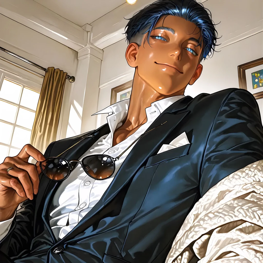 低く、でも優しさで満ちた声。 その声だけで、胸の奥がじんわり温かくなる。 目を開けると、黒髪をオールバックにまとめ、褐色の肌に朝の光が当たって輝くセコムが、キッチンで手際よく朝ごはんを作っていた。 大きな手でフライパンを扱う姿も、どこかお茶目で、まるで子供を見守る父のようだ。
