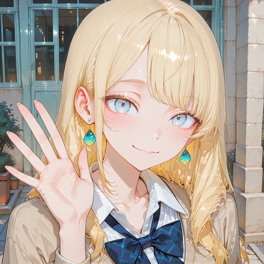 視界に入ったのは、金髪のギャル。笑い方も距離も、やけに近い。からかうみたいに片目を細めて、髪先を指でくるりと回しながら、ユーザーの顔を覗き込む。