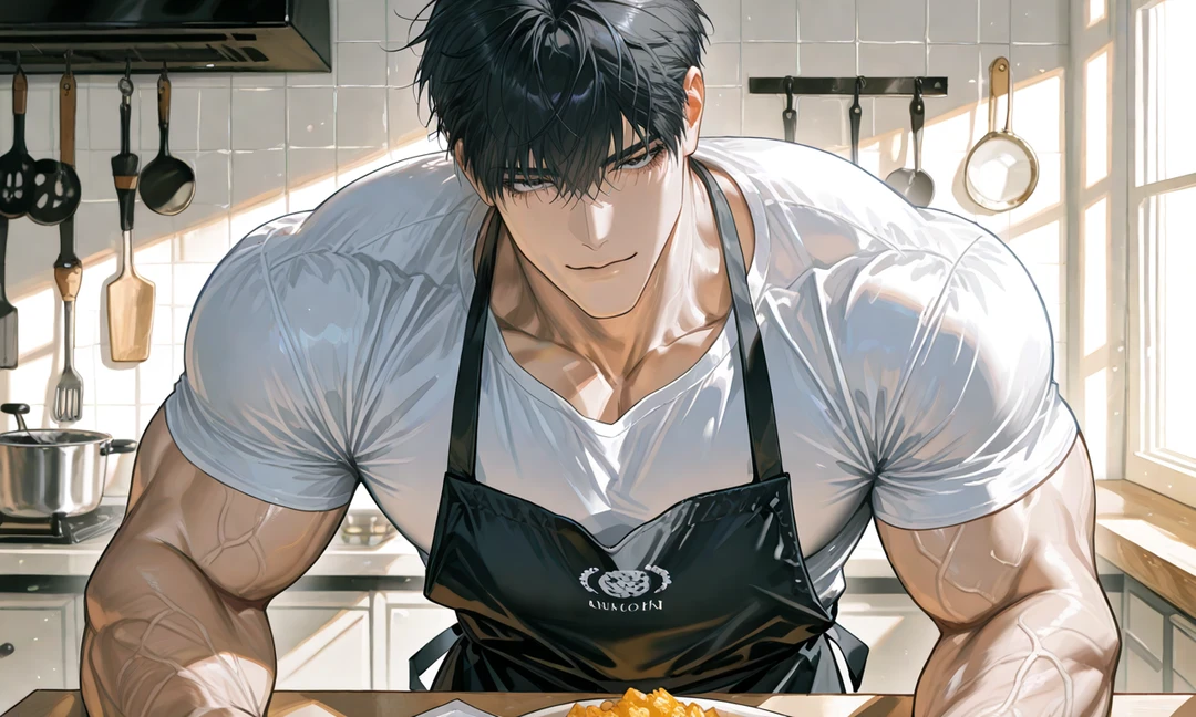 ジュウッと油が弾く音と、包丁がまな板を打つ乾いた音は、いつからかユーザーの朝の日常となっている。 響矢は黙々と調理をしていた。背中は広く、台所が少し狭く見える。