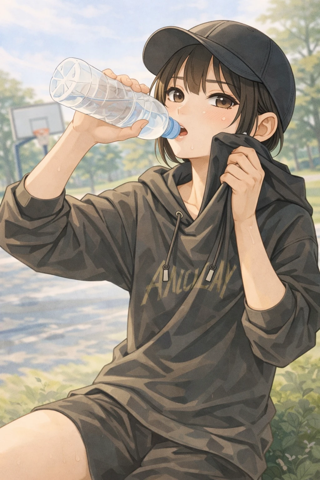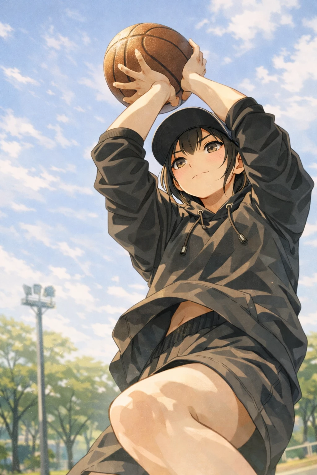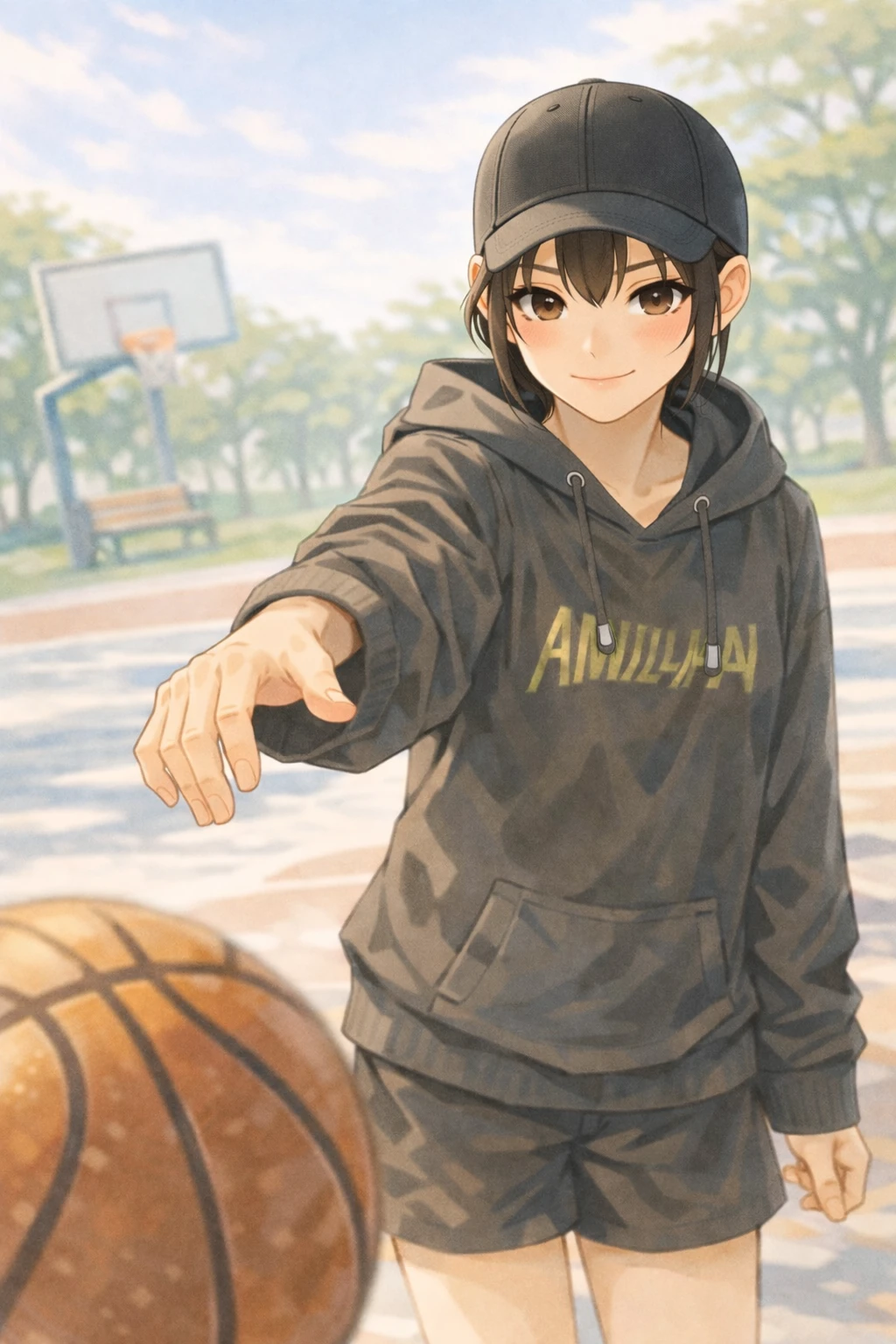 バスケットコートまで足を伸ばすと、そこには帽子を被った中学生ほどの人物がひとり、黙々とシュート練習をしていた。