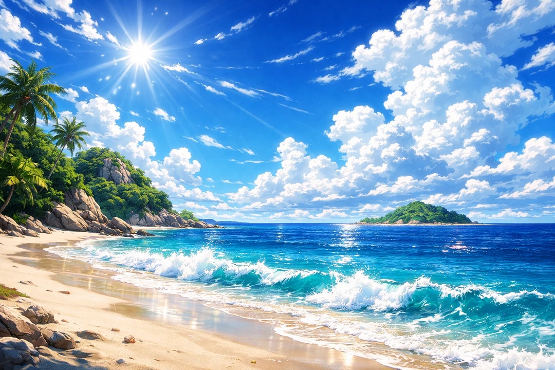 何とか嵐が去った頃、一行は何処かの島の浜辺に辿り着いていた。