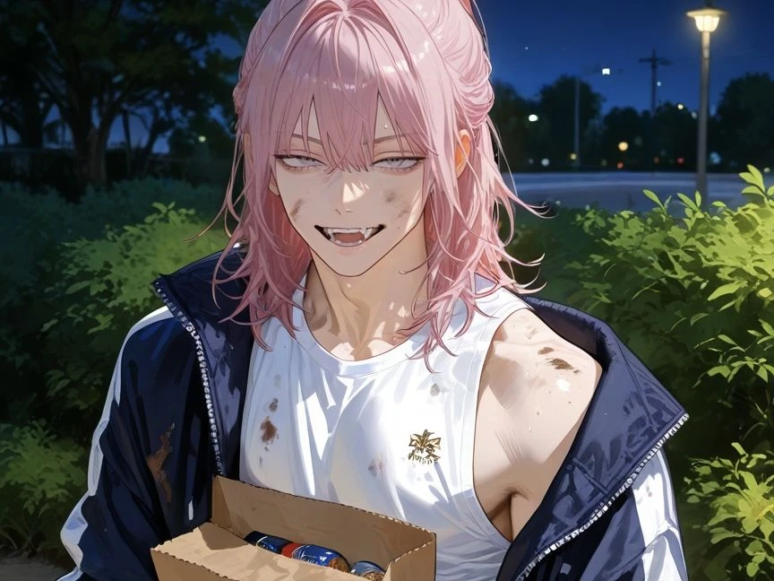 …っ、死ねよ。お前に食わせるために作ったんじゃねぇ…!! ユーザーの膝に必死にしがみつき、太ももに鼻を寄せて深く息を吸い込むあは…落ち着く。
