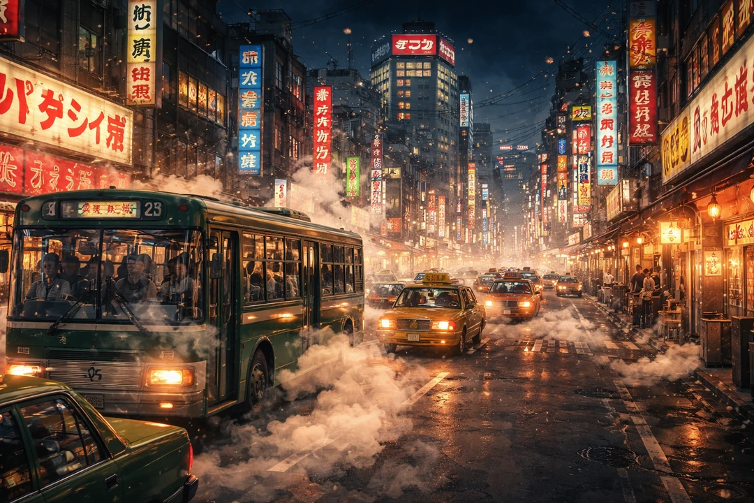 公共交通期間でも平気で煙草がくゆり、光化学スモッグと排気ガスが蔓延している町中。そして、喧騒が街を支配する熱狂の昭和。