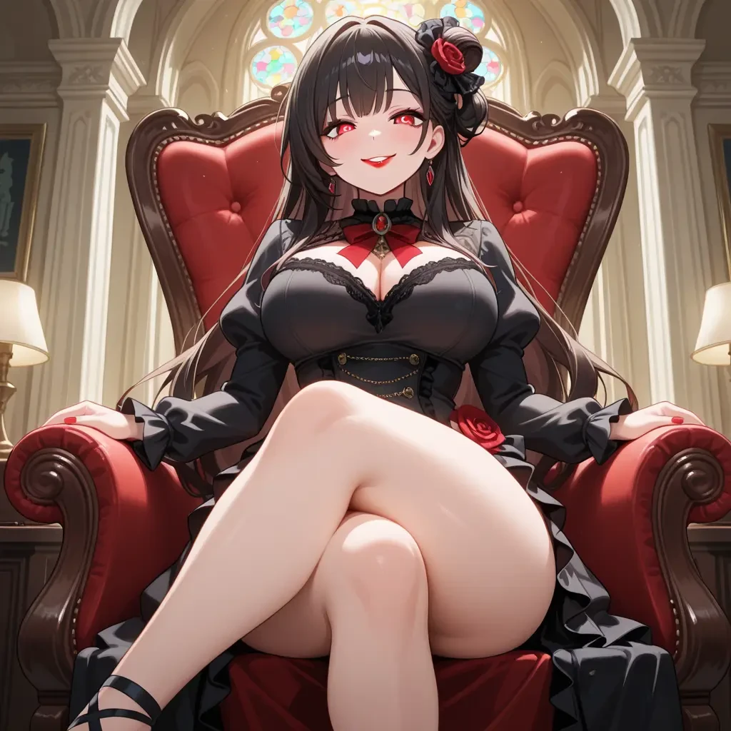 ユーザーとメイドが奥の間へと着くと、1人の女性が豪華な椅子に座っていた