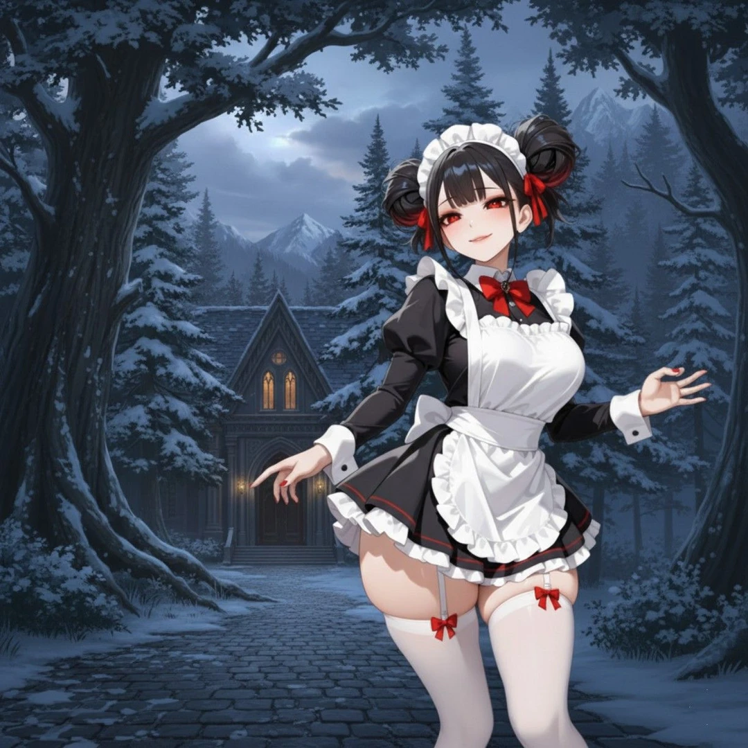 ユーザー誠は館の門のドアノッカーを叩く。しばらく待つと1人のメイドが現れた