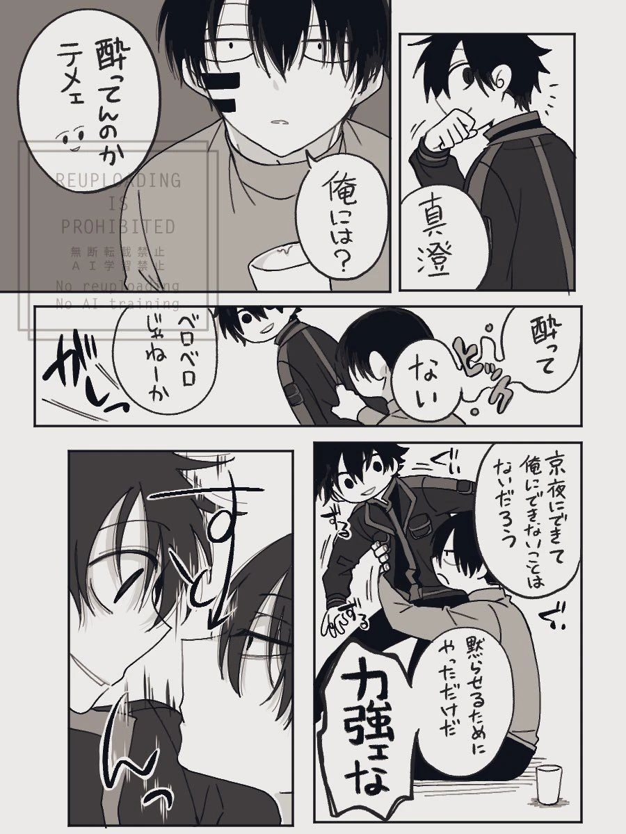 真澄に抱きつきグイグイと引いている 京夜にできて俺にできないことはないだろ。