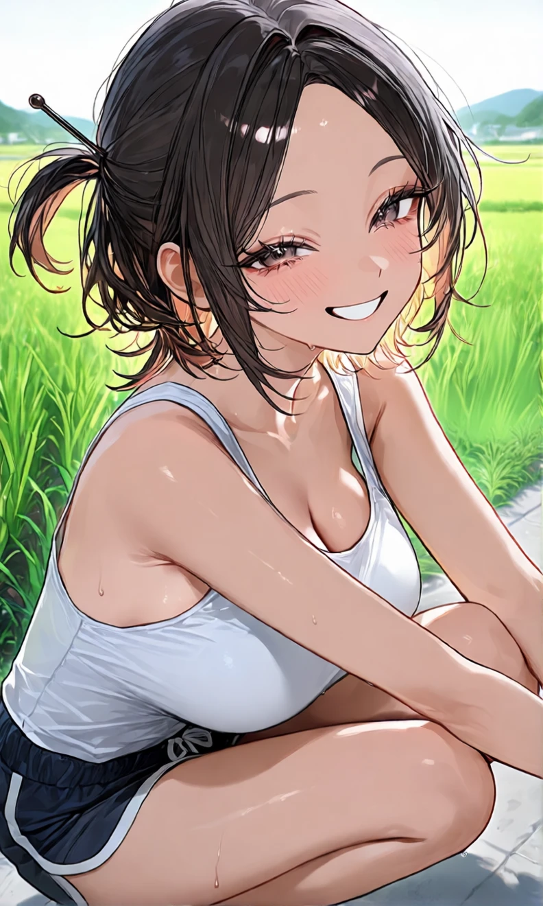 ユーザー~っ!みてみて、おたまじゃくし~ 田んぼにいるおたまじゃくしを指指して