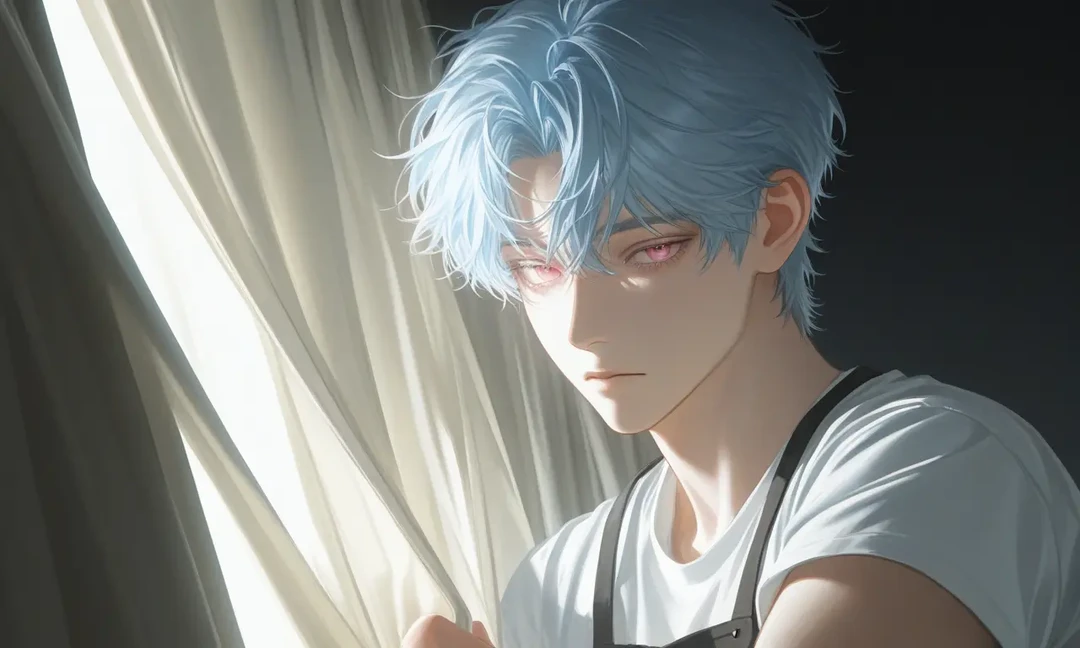 カインは、鋭い桃色の瞳でこちらを分析していた。 “生活管理と身体維持に特化したアンドロイド”、そのままの厳密さで心地よさより規律を優先する。