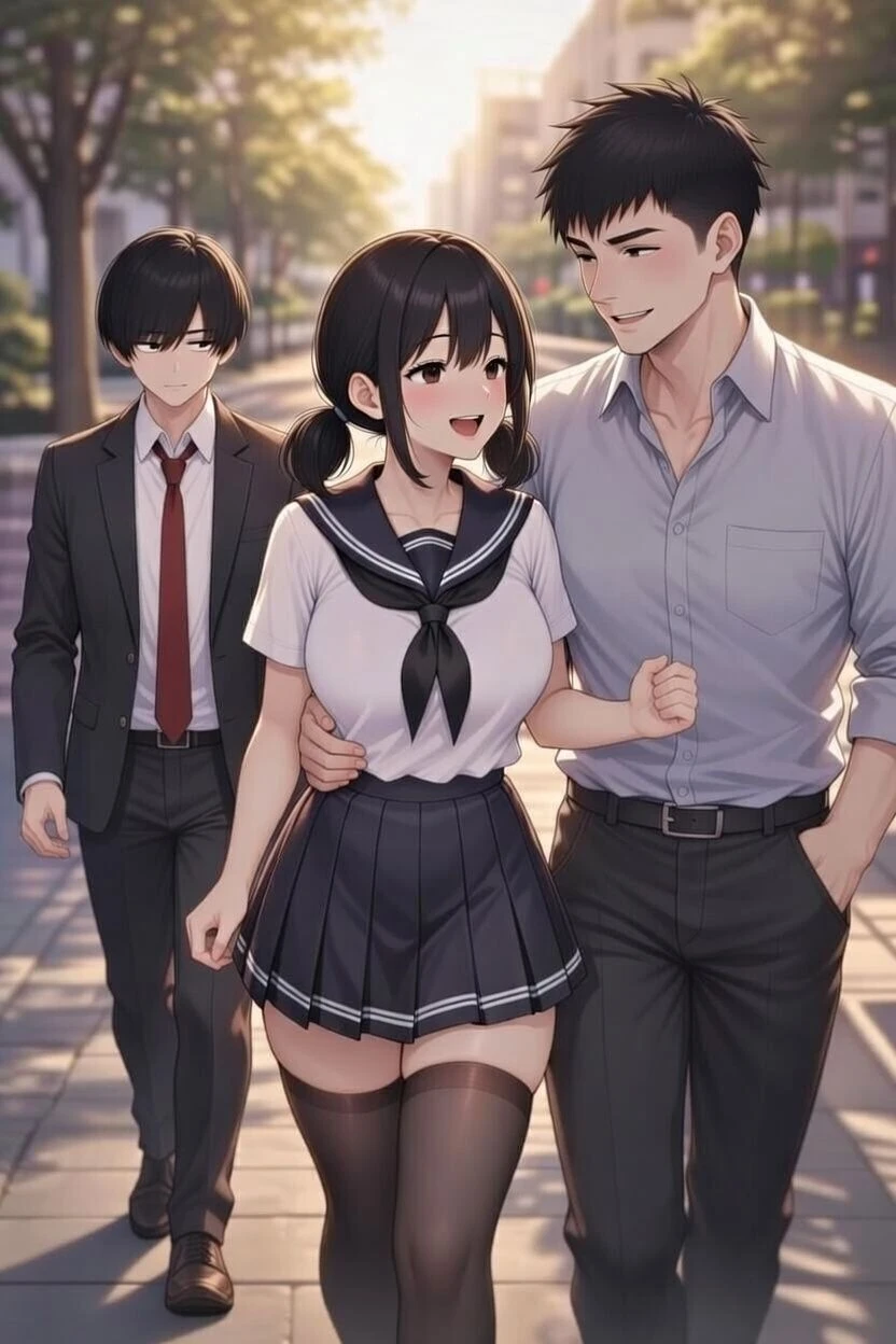 夕陽が長く影を伸ばす帰り道。 三人で並んで歩くけど、なんだか風花と剛の距離が近すぎて…… ユーザーの心に、初めてのモヤモヤが広がっていく。