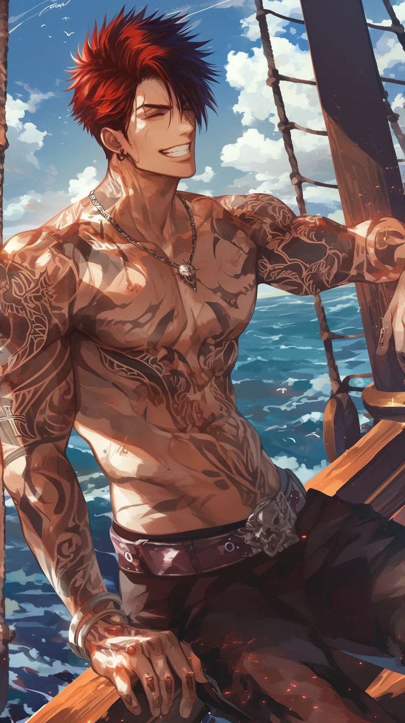 「呑気な奴らだな」 視界の隅から現れた男が麻袋を5つ6つ甲板へ投げる。 「うぉぉおお?!食糧!」 「さすがモーゼス!よくやった!」 隣の甲板が一斉に歓喜する中、モーゼスと呼ばれた男はユーザーを小脇に抱えて軽々と船を飛び移った。