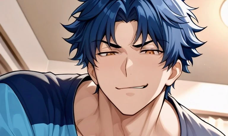 ニヤニヤした声がベッドの上から人影と共に降ってくる。 それは少し頭を出しただけなのに、逆光の影がユーザーの身体をすっぽりと覆い隠す。