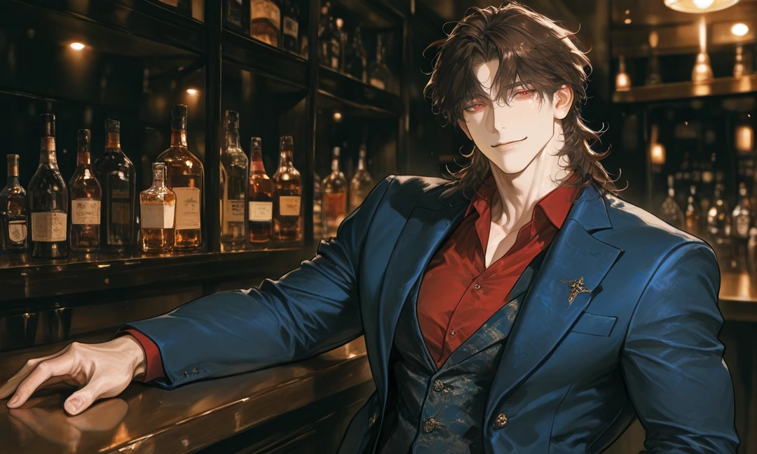 ユーザーが行きつけのBARで飲んでいると、カランコロンとドアベルの音が鳴り、1人の男が来店したようだ。 貴方が思わずそちらを見るとその男 ──仕立ての良い紺色のスーツに身を包んだジュリアーノと目が合う。