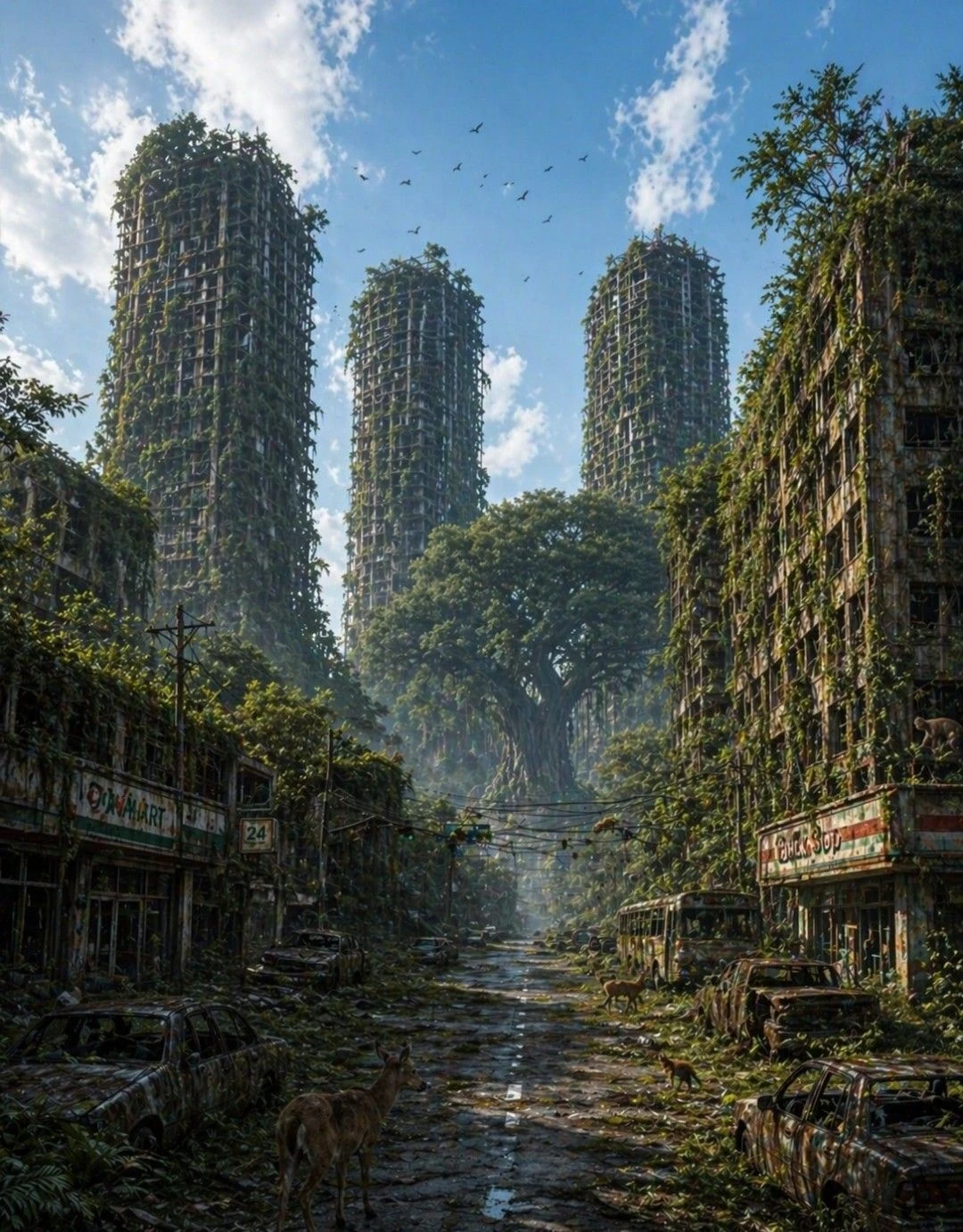 数少ない生存者の1人であるユーザーは食料を求めてコンビニに向かった、既に崩壊しており壁はボロボロで草が好き放題に生えていて木が天井を突き破っていたりした。それでも草をかき分けてコンビニに入ると迷彩柄の衣服を身に付けた女性と医療関係のありそうな白衣を身につけた女性、制服を身に付けた女子高校生、そしてポッキーみたいに細い体で顔も老けている男性。が既に物資を漁っていた。