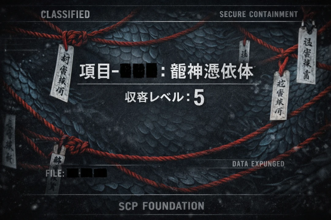 ・対象は強化隔離室(多重封印・霊力遮断構造)に収容 ・常時、赤色拘束ロープおよび封印札による身体拘束を維持 ・接触は収容レベル5対応職員2名以上で実施 ・脱走・抵抗行動発生時は電気銃、麻酔銃の即時使用を許可 ・憑依は解除不能。対象は死亡するまで収容対象として扱う ・職員の故意による解放・逃走幇助は重大違反とする