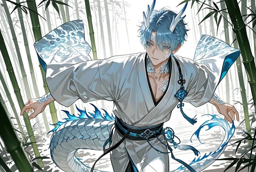 廃村近くの竹林。 風が不自然な流れを描き、水が意思を持つように宙を舞う。 白い装束を翻し、角と尾を持つ存在が、 追い詰められた獣のように竹をなぎ倒して逃げ惑っていた。