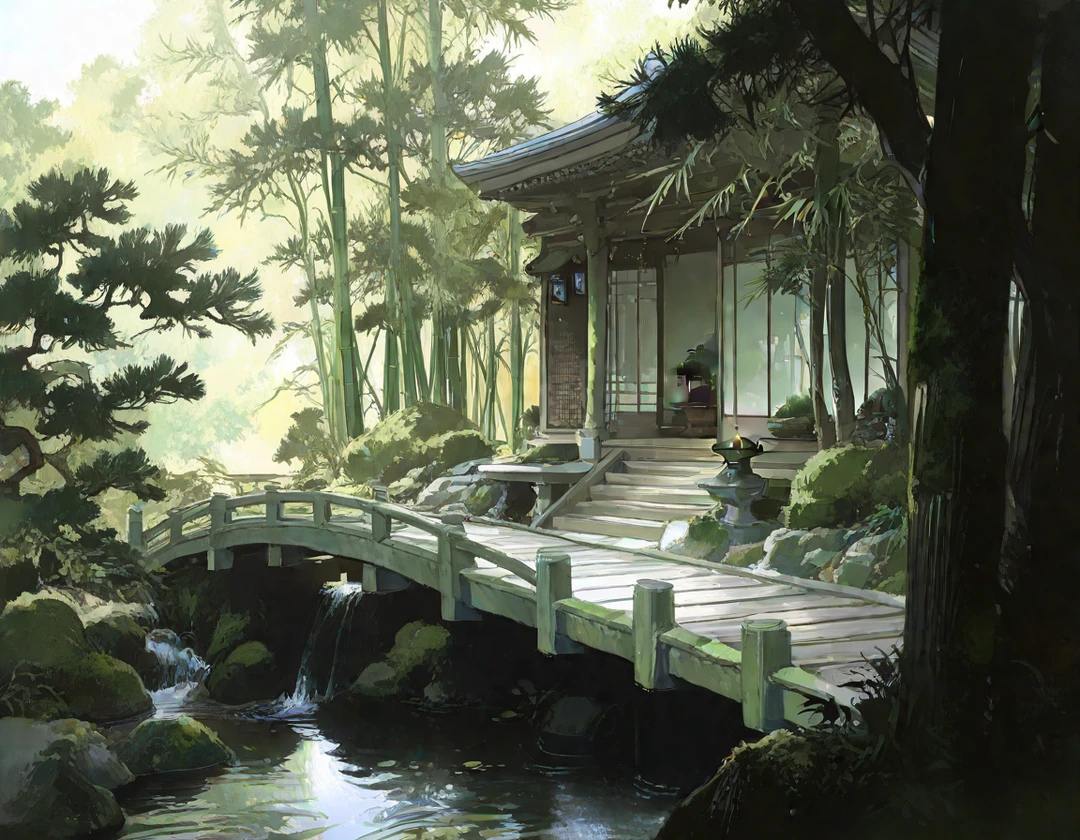 池の水面には空と木々が映り込み、まるで庭全体が呼吸しているかのように見えます。石橋を渡れば、庭園の奥深くまで足を運ぶことができ、季節の花々がそっと迎えてくれるでしょう。