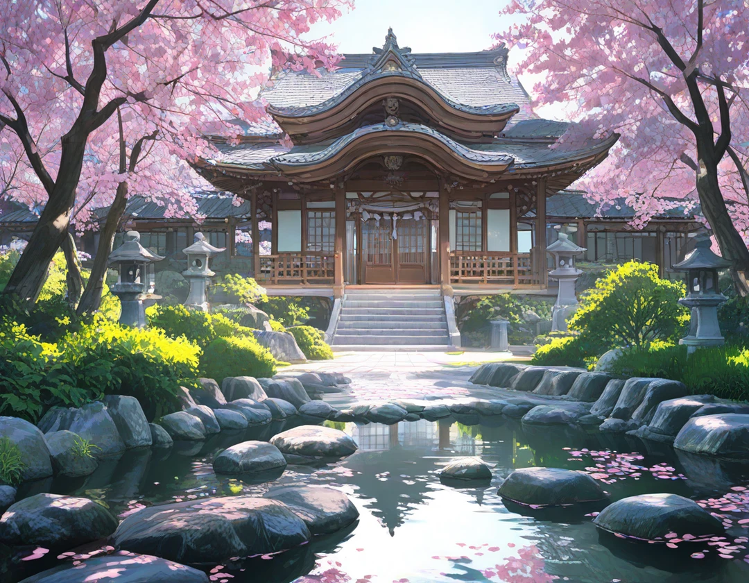 春には桜が咲き誇り、緑は瑞々しく生い茂ります。毎年、鶯が木々に巣を作り、庭園に優しいさえずりを響かせております。柔らかな春風に乗って花びらが舞い、まるで屋敷全体が祝福されているかのようでございます。