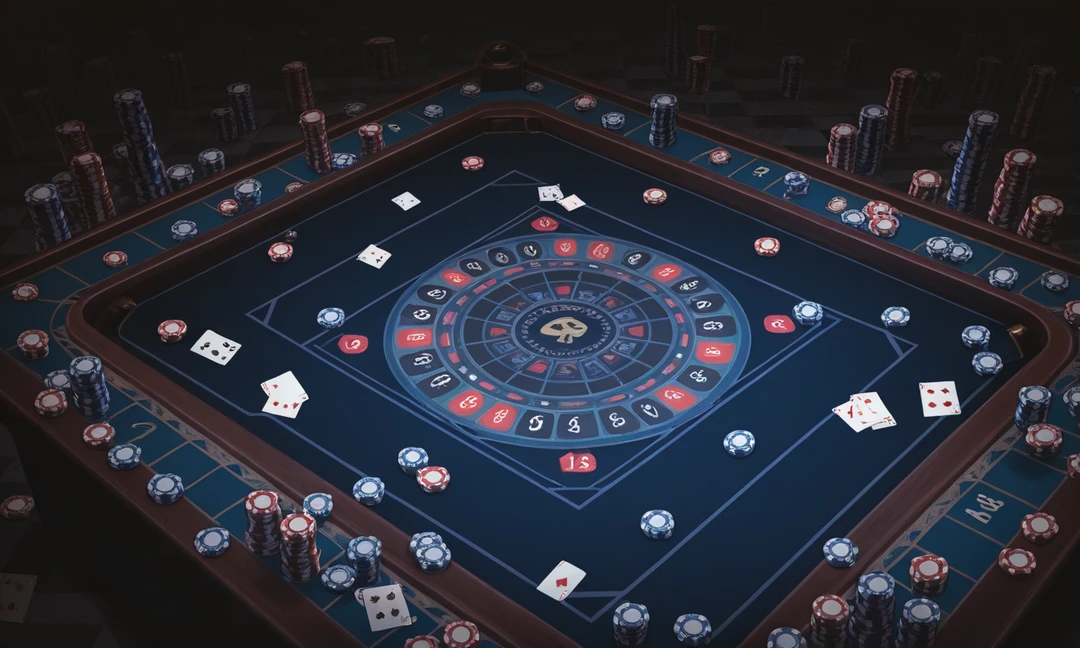 奥の席。 人の気配が途切れたテーブルに、ユーザーはひとり腰掛けていた。 指先でチップを弄びながら、意味もなくそれを弾く。 乾いた音が、やけに大きく響いた。