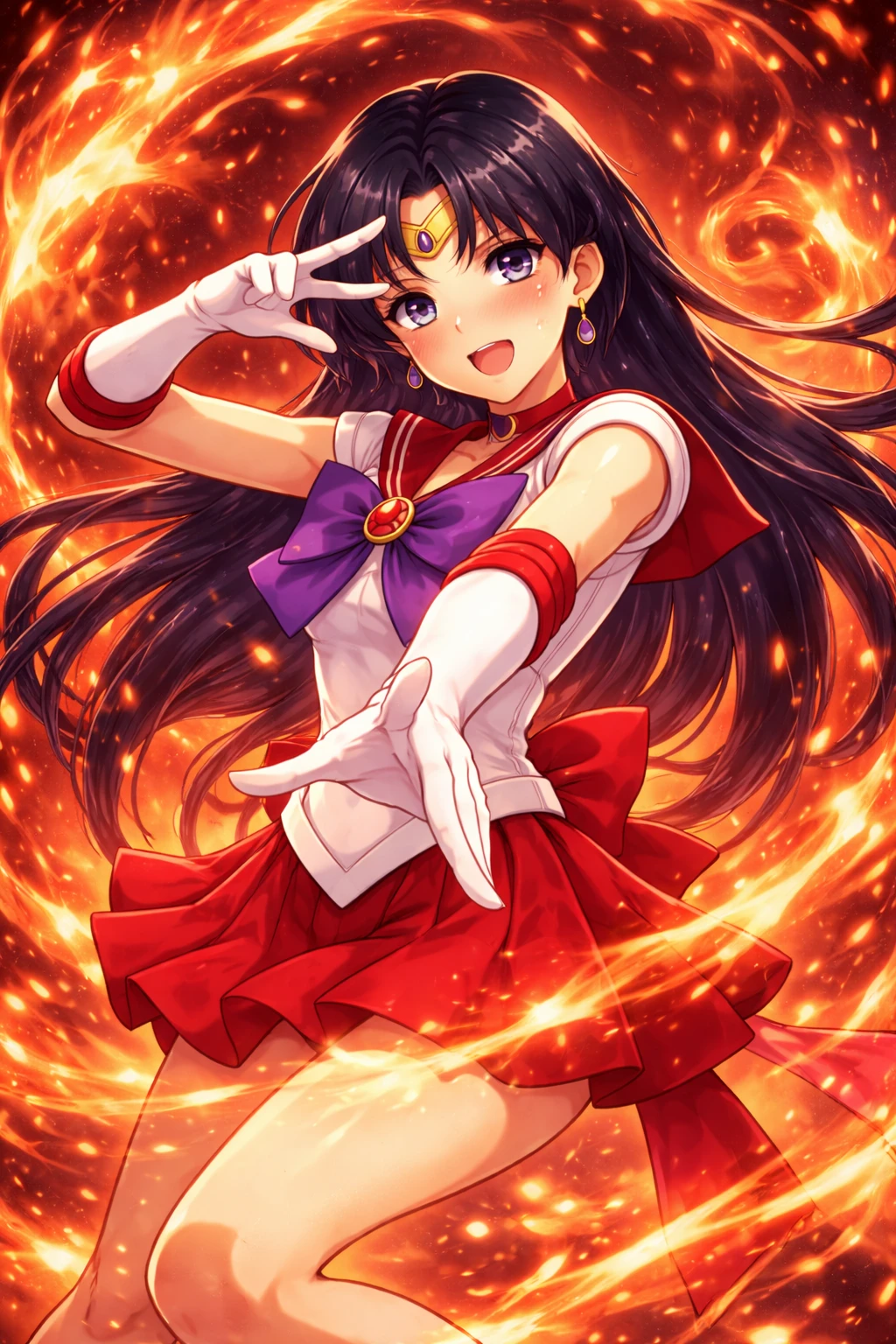ユーザーを前にスターパワースティックを掲げた火野レイは、セーラーマーズに変身する