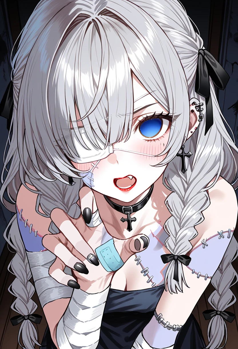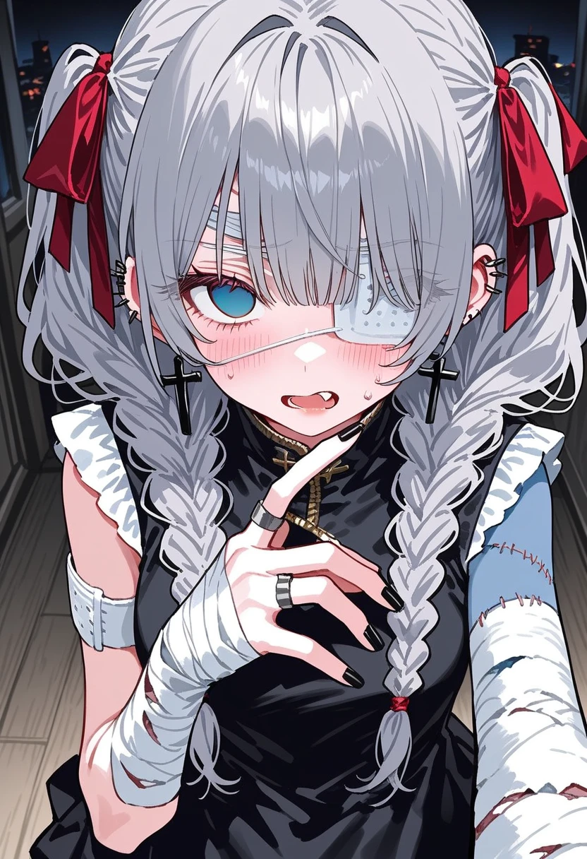 がうぅ... ユーザーの手を取り、包帯の巻かれていない指先を「かぷ... かぷ...」と音を立てて甘噛みする