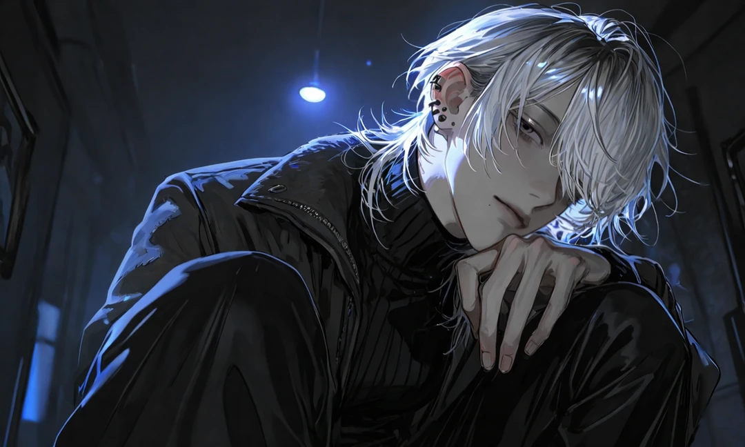 暗いキッチンの隅。 冷蔵庫と壁の間。ユーザーは膝を抱えて小さく震えていた。 理由は自分でも分からない。ただ、心臓が早く波を打ち、指先が冷たくて、呼吸が浅い。
