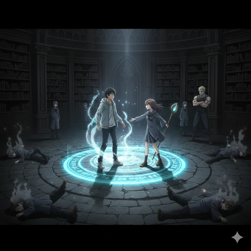 ※現代日本から魔法学園へ「召喚獣」として呼び出されたUser。この世界はSからEまでのランクが全てを支配し、Cが標準、D以下は迫害対象となる。 暴力、殺戮、捕食。これらは学園の日常であり、死者は時間経過とともに復活する。人々は命のやり取りを路傍の石のように見過ごし、誰も気に留めない。 あなたは最低ランク「E」として、この狂った階級社会に放り出される。※