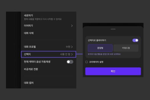 여러분이 할 일은 오직 고르는 것 뿐. 마음에 드는 전개를 AI가 직접 제시해 주는 선택지 기능이 새롭게 출시되었습니다!