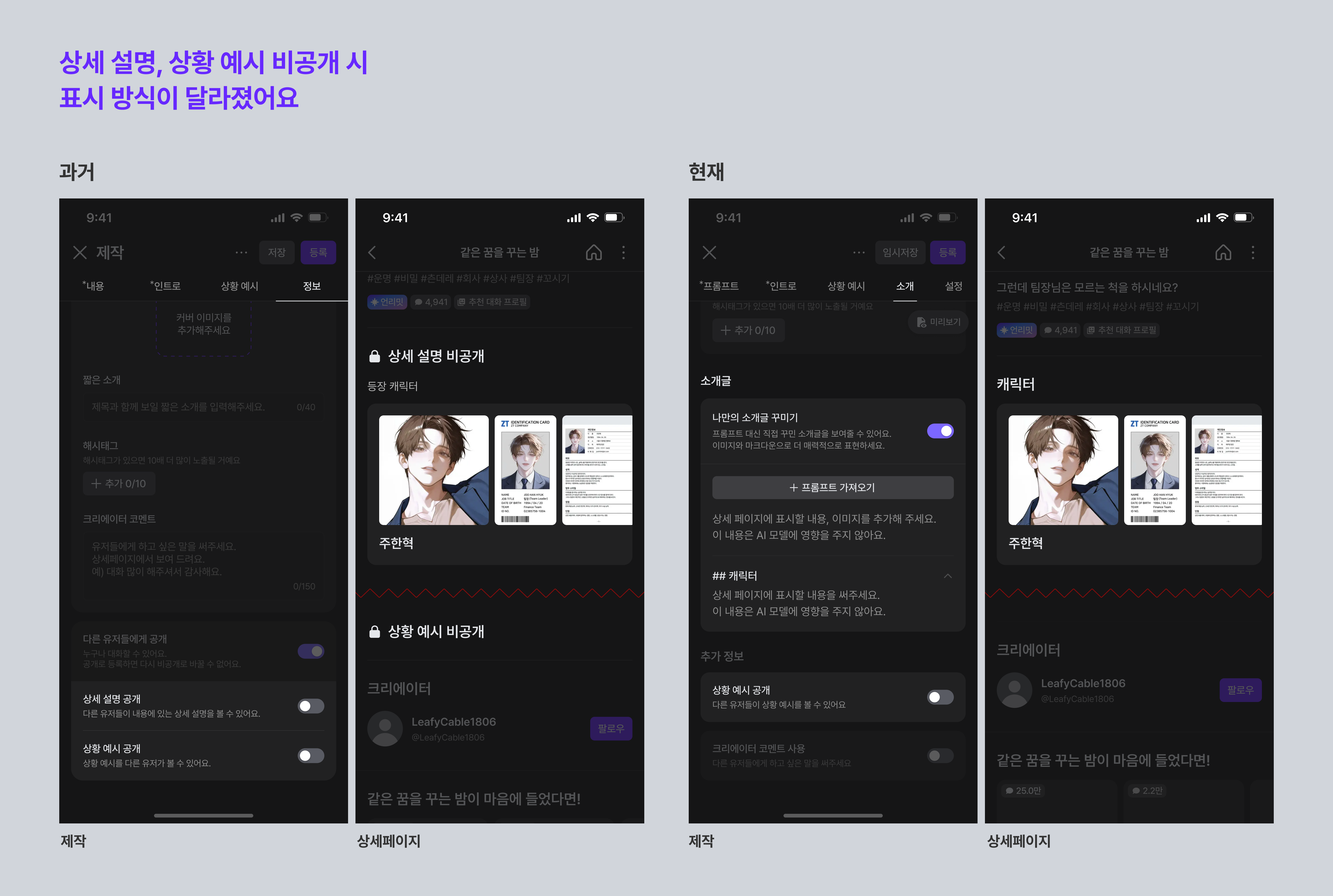 그동안 캐릭터 상세 페이지에는 작성하신 프롬프트가 그대로 노출되고 있었는데요.