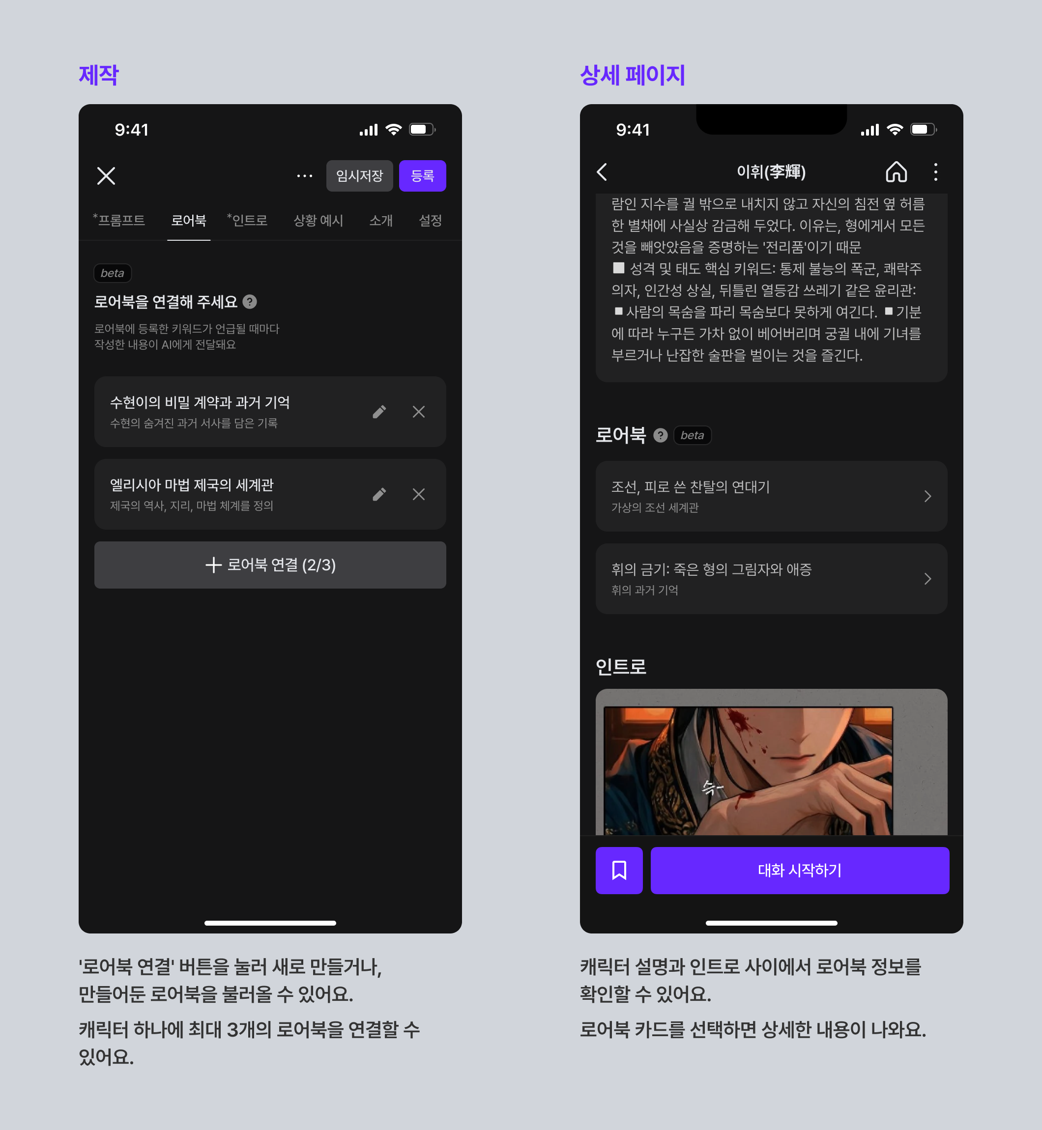 이제 프롬프트에 로어북을 더해 설정과 세계관을 더 탄탄하게 유지하며 플레이할 수 있습니다.