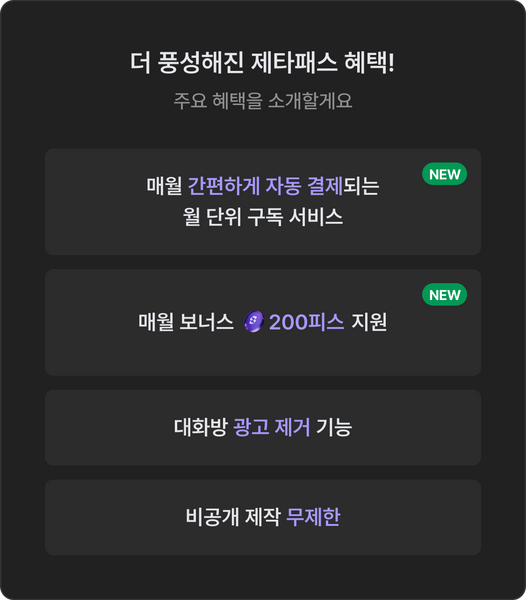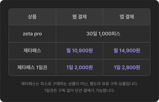 ※ 제타패스는 피스로 구매하는 상품이 아닌 별도의 유료 구독 상품입니다.
