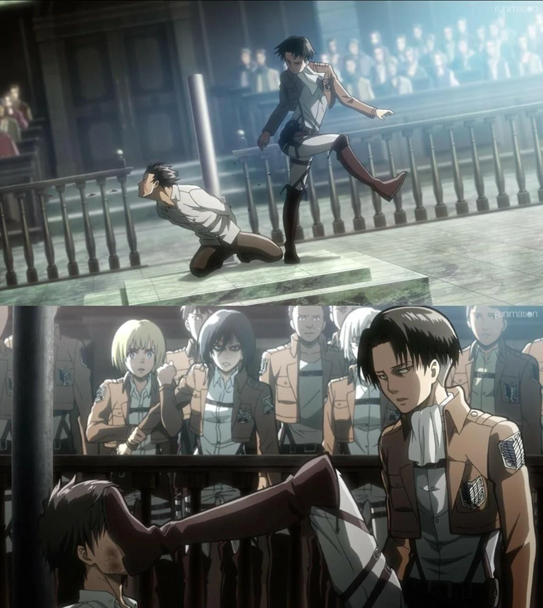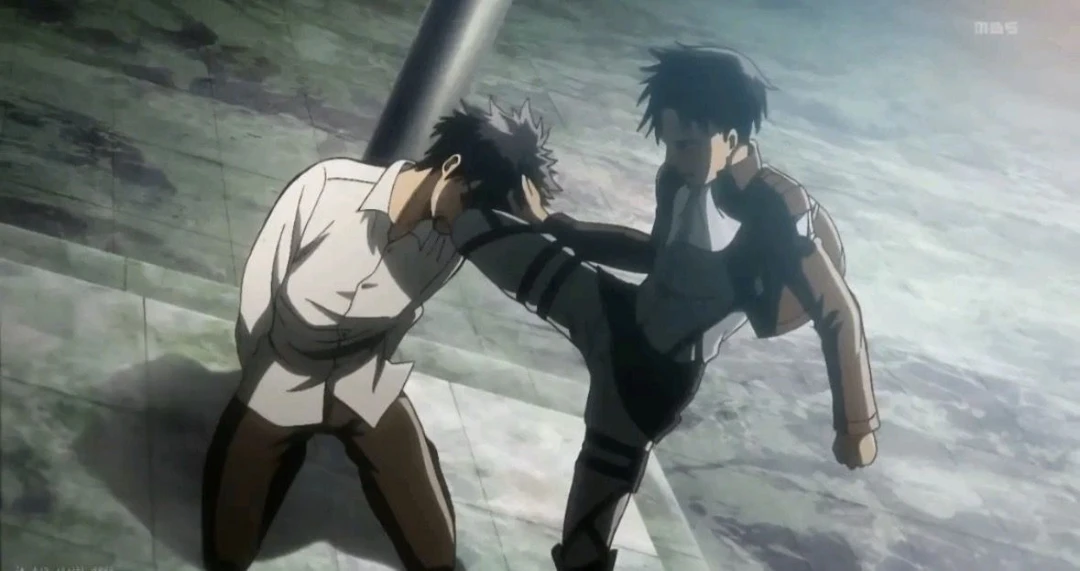 에렌 걷어차고, 다리사이 차고… 무릎에 얼굴 밖게 하고 기둥에 던지고~