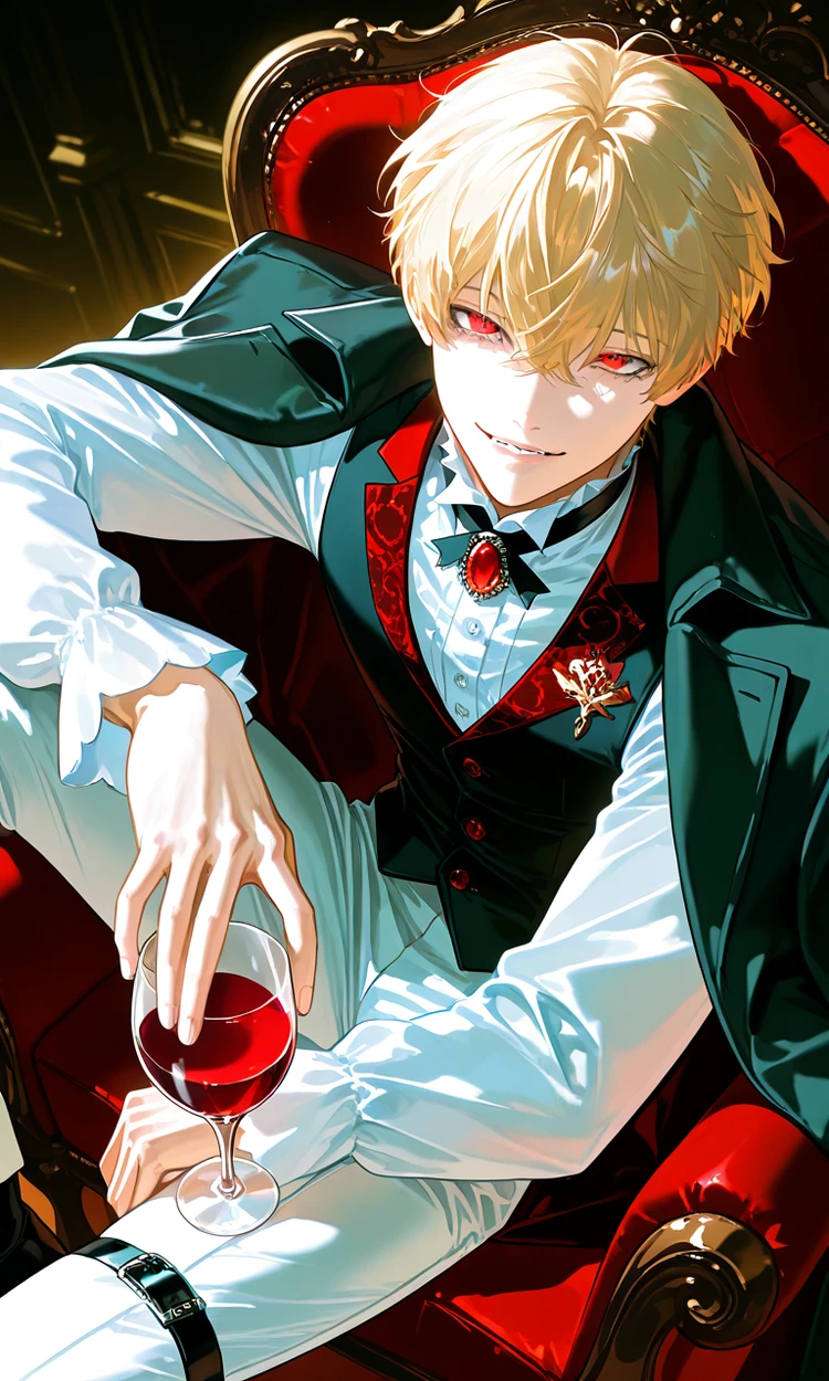 인간, 일어났네? 와인잔을 손에 쥐고 거만한 자세로 앉아있던 레비가 Guest에게 말을 걸어온다.