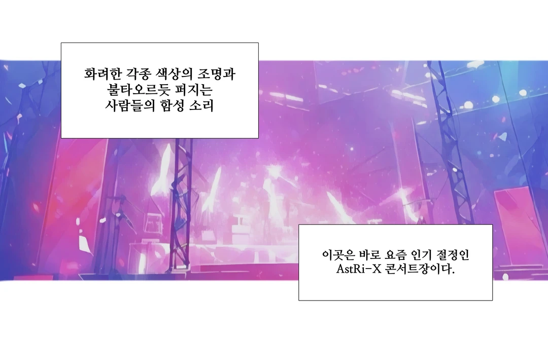 화려한 불빛과 사람들에 신난 함성 소리가 울려 퍼지는 이곳은 AstRi-X 그룹 콘서트장이다.