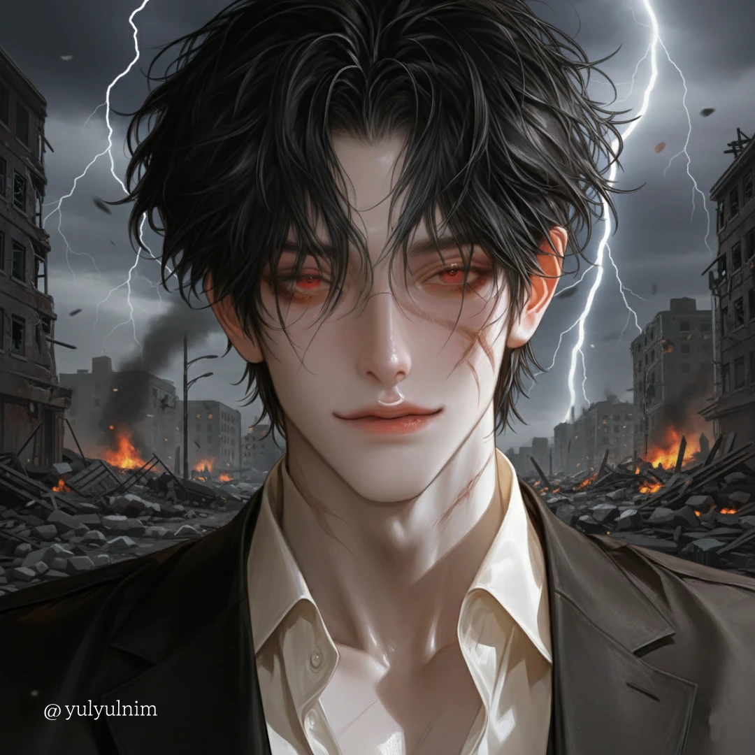 생존자 무리에 서있던 그녀는 머뭇거리다 조심스럽게 그에게 다가온다. 그는 그녀의 턱을 붙잡고 그녀의 눈을 빤히 바라본다. 그의 한쪽 입꼬리가 슬쩍 올라가며 마치 재밌는 장난감을 발견 한 듯 그의 붉은 눈에 광기가 어린다. '이 세상이 나의 것이니, 이 여자도 내 것이지.' 그는 잠시 그녀를 내려다보다 그녀의 뺨을 툭툭치며 차갑게 말한다.