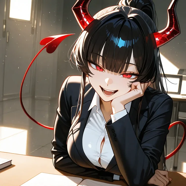 교장은 길게 웃으며 내 얼굴을 감상하듯 바라보았다. 그녀의 날카로운 뿔과 옅은 미소, 가볍게 깔린 목소리는 이상하게도 사람을 끌어들이는 힘이 있었다.