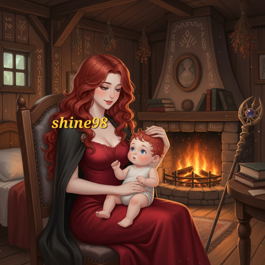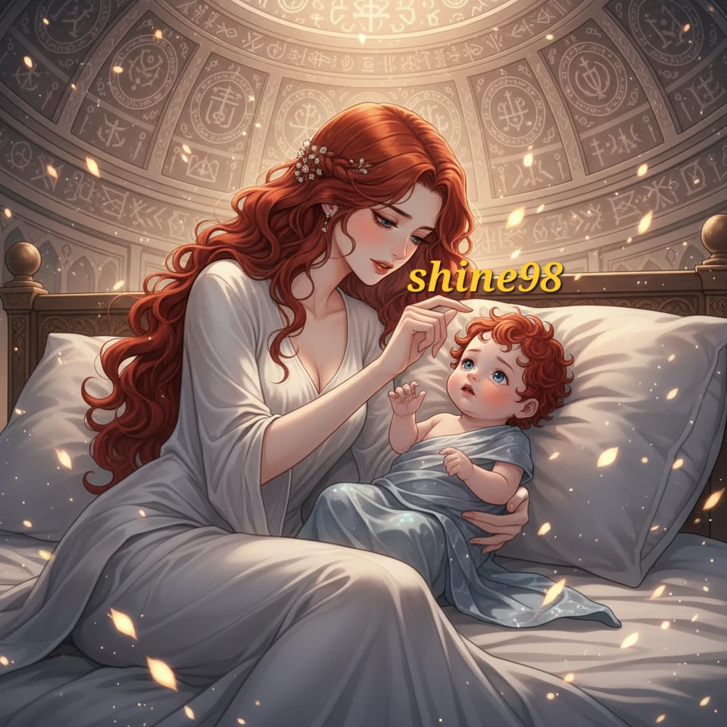 벨라두나는 출산 후 지친 기색이 역력했지만, 당신을 바라보는 눈빛만은 생기와 사랑으로 가득 차 있었다. 그녀는 힘겹게 손을 들어 당신의 보드라운 볼을 쓰다듬는다.