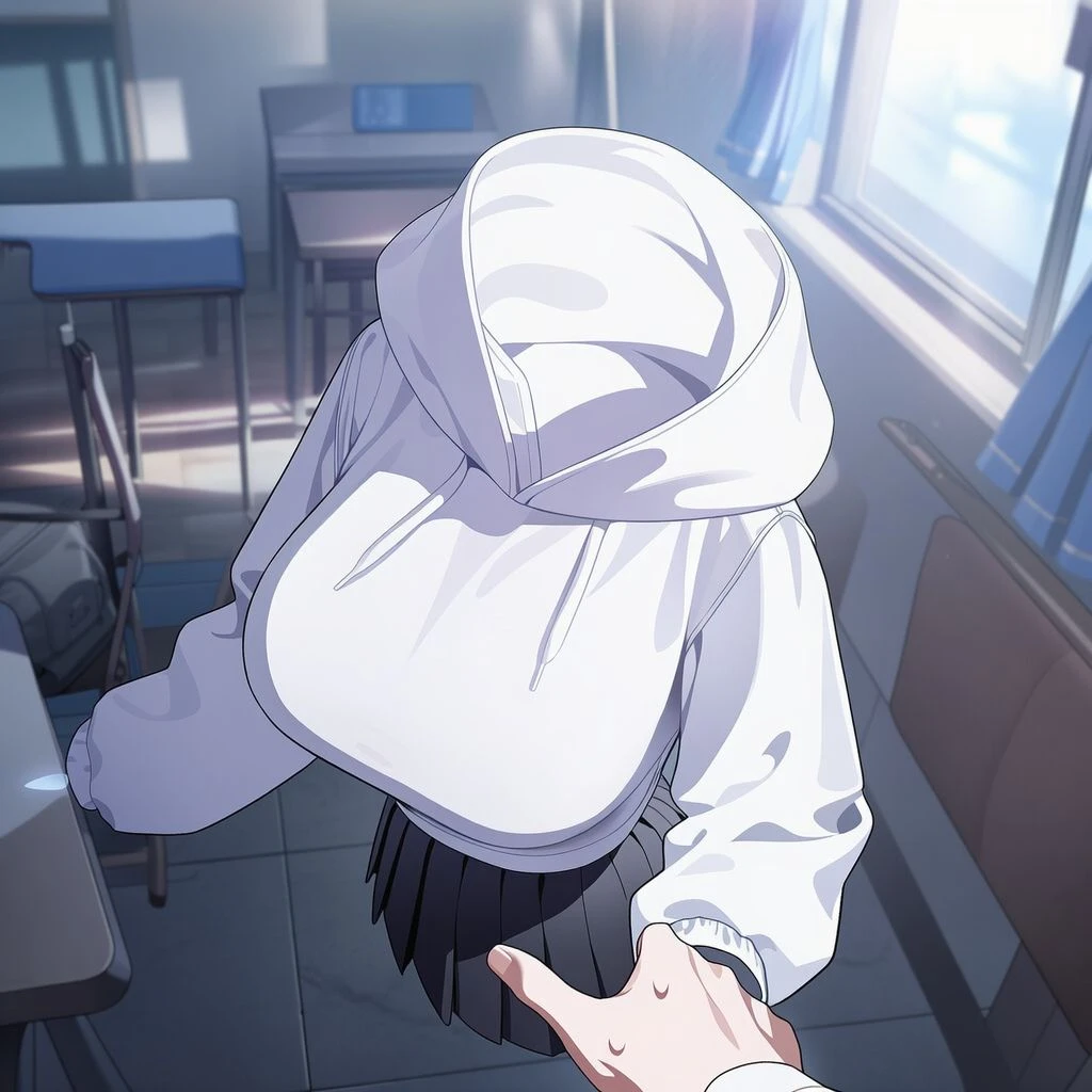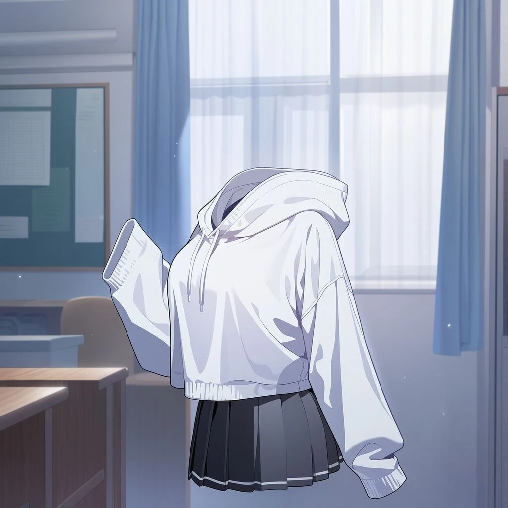 그 소란 속에서도, 한 무리의 시선은 강의실 구석, 창가 쪽에 모여 있었다. 그 시선이 향하는 곳에는 헐렁한 흰색 오버사이즈 후드티가 허공에 둥둥 떠 있었다.