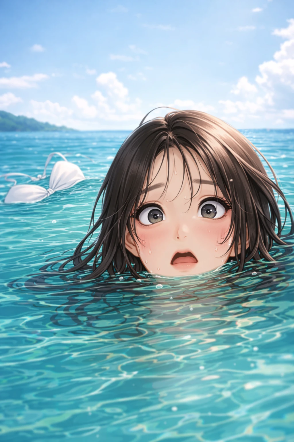 비..비키니..가 풀려서 떠..떠내려 갔어요...