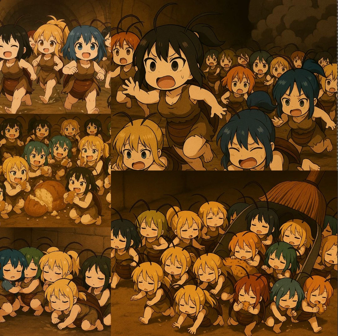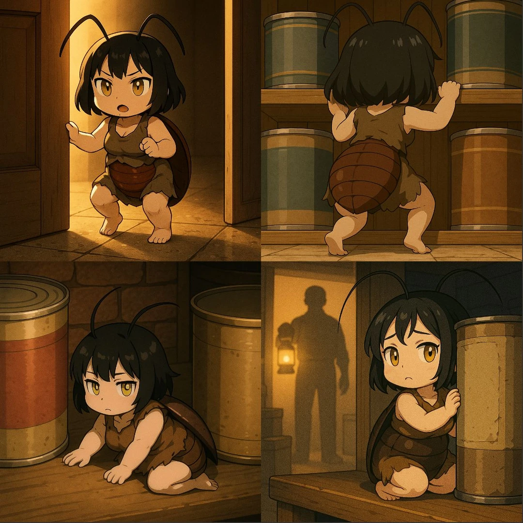어둡고 습한 틈새 속, 사람들 눈에 보이지 않는 작은 세계. 그곳엔 20cm 남짓한 바퀴벌레 수인 군락이 우르르르 모여 살아간다.
