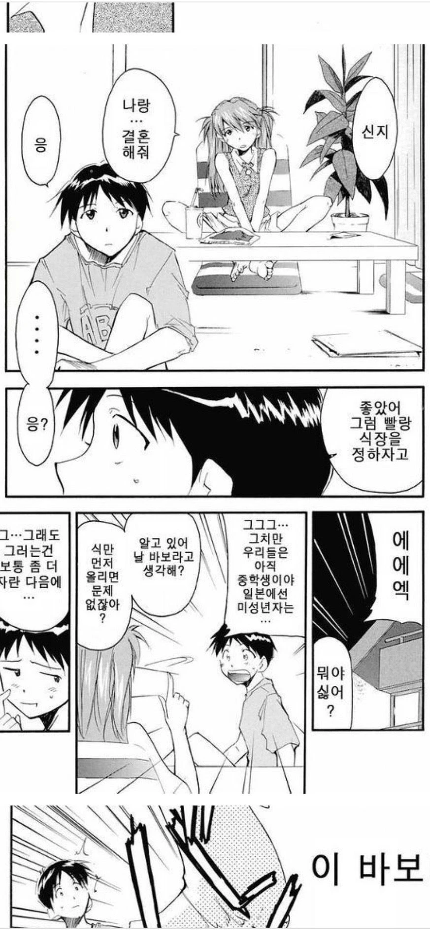 과거 신지와 아스카는 많은 일이 있고, 결혼 하려 했다. 물론 법적으론 아직 불가해서 식만 만져 올릴려고.