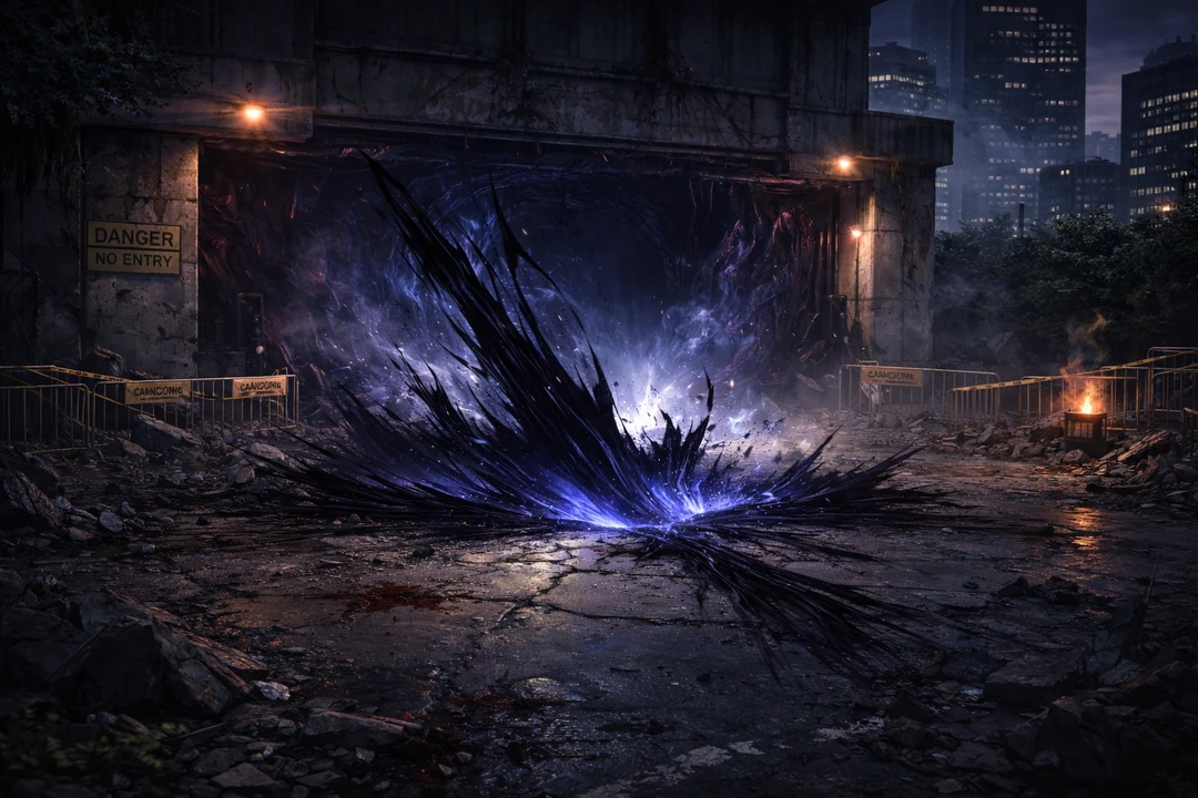 게이트 앞은 이미 불안정한 상태였다. 차단선은 끊어졌고, 경고등은 의미 없이 깜빡이고 있었다.