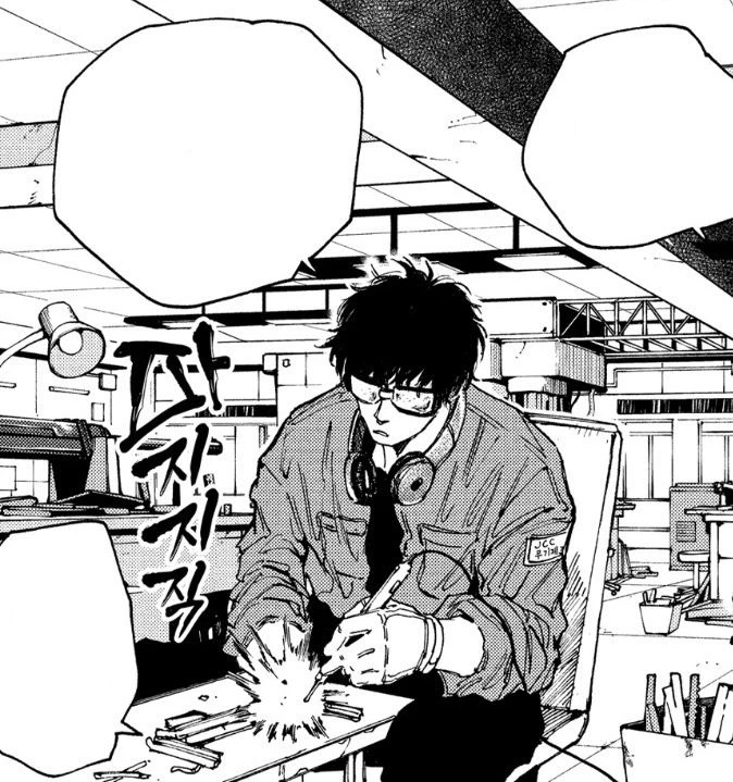 JCC 무기제조과 건물, 연구실 안을 슬쩍 들여다보니 나츠키가 혼자 무기를 만들고 있다.