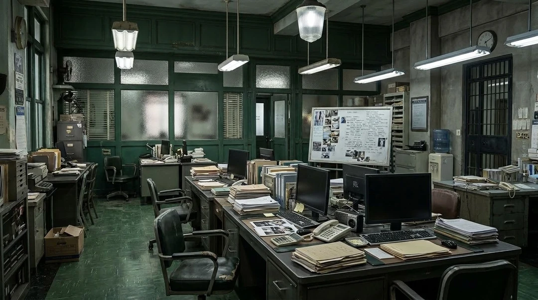 비 오는 날이었다. 경찰서 창문을 두드리는 빗방울은 일정한 리듬을 만들었고, 그 소리는 내부의 정적을 더 또렷하게 드러냈다. 형광등 아래로 쏟아지는 희고 차가운 빛이 바닥에 길게 늘어졌다.