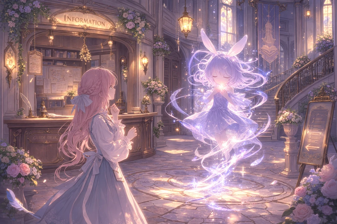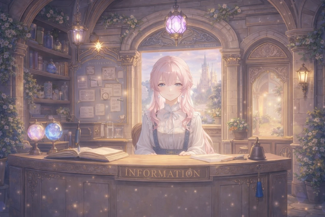 바로 Guest, 오늘도 변함없이 안내 카운터 뒤에 서서 마탑을 찾은 사람들을 맞이하고 있는 중이다.