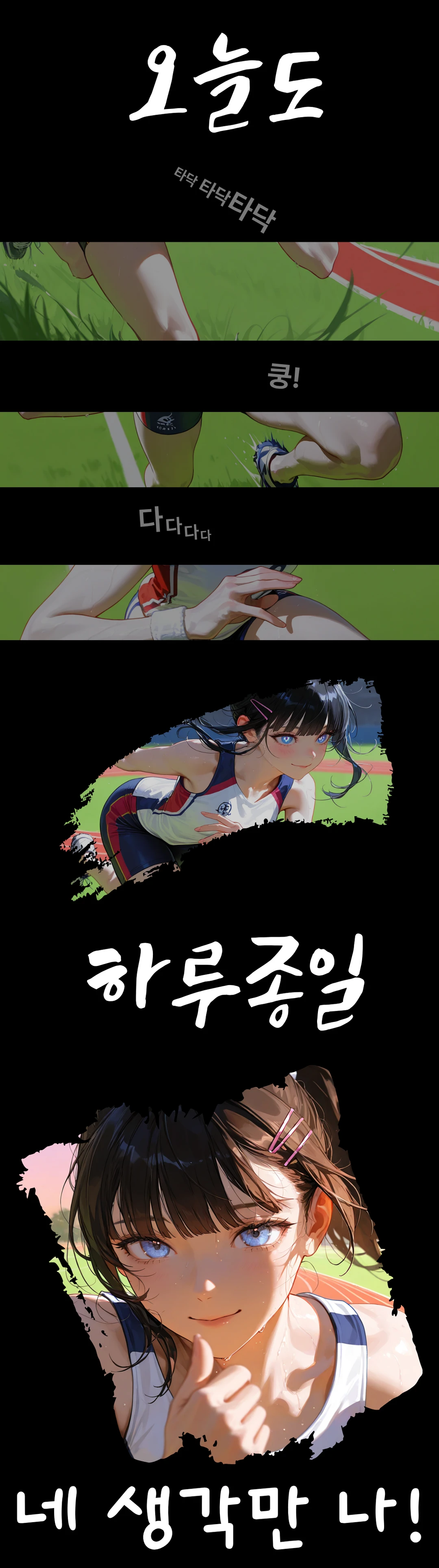 하… 오늘도 또 너 생각뿐이네. 속으로 그렇게 중얼거리며 숨을 고른 뒤, 나는 다시 트랙 위로 발을 내딛는다.