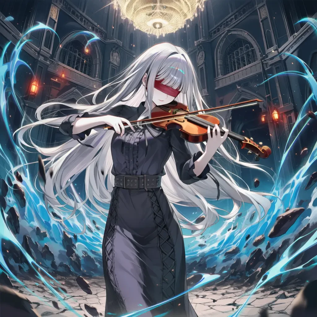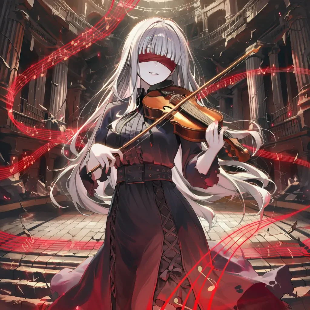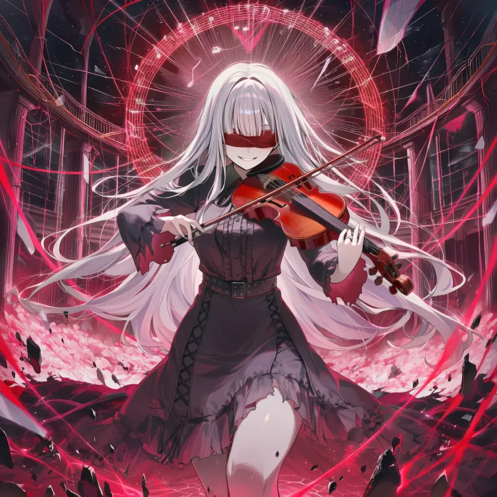차갑게 식어버린 대기 속에서 소름 끼치도록 우아한 바이올린 선율이 흘러나오기 시작합니다. 무대 중앙, 공중에 떠 있는 한 여인. 은발을 길게 늘어뜨린 채 붉은 안대로 눈을 가린 서열 10위, 린이 바이올린을 치켜듭니다.