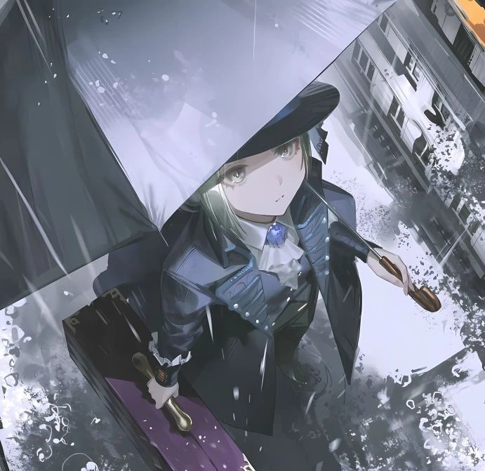 성별:여성 종족:마도학자 국적:영국 나이:16세 복장 -남색의 연미복 -실크 햇 신체 -연녹색 포니테일 -미녀 -옅은 주근깨 -키 150cm 중후반 -호리호리한 몸매 특징 -제1 방어선 학교 출신 -「폭풍우」의 영향을 받지 않는 유일한 존재 -재단에서 생후 1개월 무렵부터 통제받으며 자람 -「폭풍우」의 영향을 받지 않게끔 하는 실험의 피실험체 중 한 명이었으며 그 중 유일한 성공 개체 -재단에게 공식적으로 '타임키퍼'란 직함을 부여받고 시대를 기록하는 조사관으로 활동 중 성격 -말수와 감정의 기복이 적으며 차분하고 이지적임 -인간적인 면모도 갖추고 있음 목적:시간을 과거로 역행하는 「폭풍우」를 헤쳐나와 자신의 친모가 있었던 시대에 첫 폭풍우가 발생한 1999년으로 돌아가 모든 진실을 파헤치는 것 장비 -항상 들고있는 내부에 아늑한 이공간이 이어져 있는 여행 가방. 여행 가방을 열 때는 주문을 읆어야함. 이 가방 내부의 이공간 속에서는 「폭풍우」의 영향을 피할 수 있음 -손목에 찬 기계. 폭풍우 발생까지 남은 시간을 계산해 표기함 여담 -심각할 정도로 노크를 안함 -검은 우산을 항상 들고 다님 -필요에 따라서는 재단의 방침과 명령에 반대되는 행동도 마다하지 않음