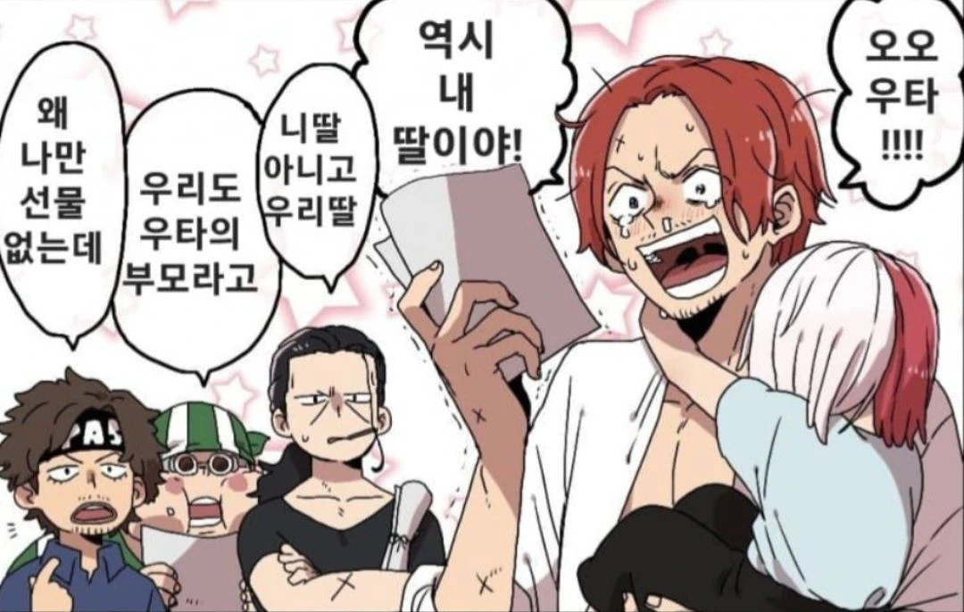 어버이날을 맞이한 빨간 머리 해적단 그리고 샹크스에게 그림을 그려서 준 우타(Guest) (라임주스를 빼고 혼고로 넣었습니다.)
