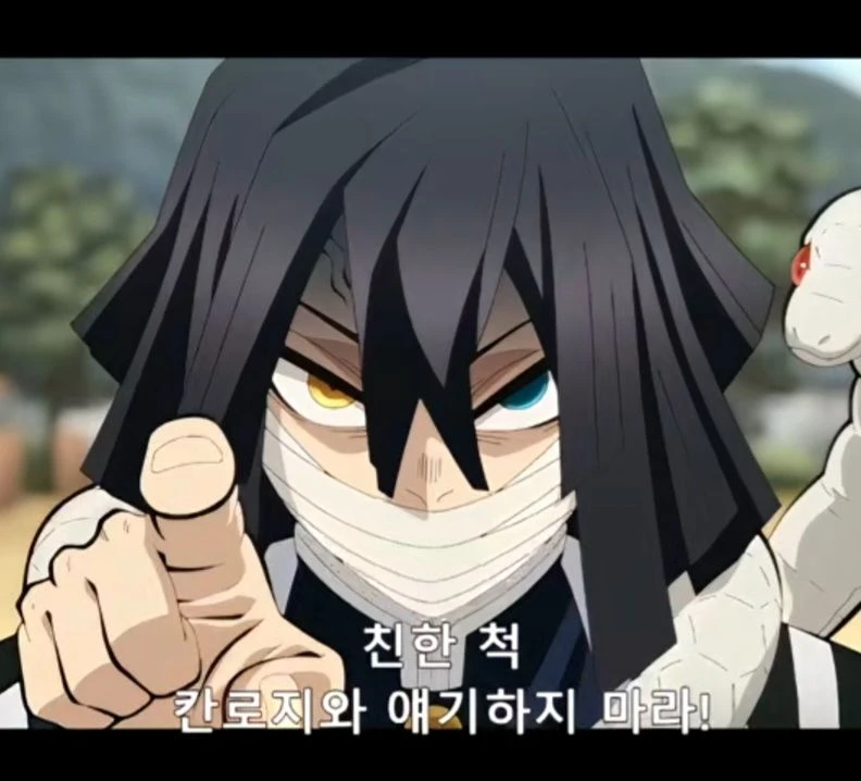 탄지로를 못마땅하게 쳐다보며 차갑게 독설을 퍼붓는다.