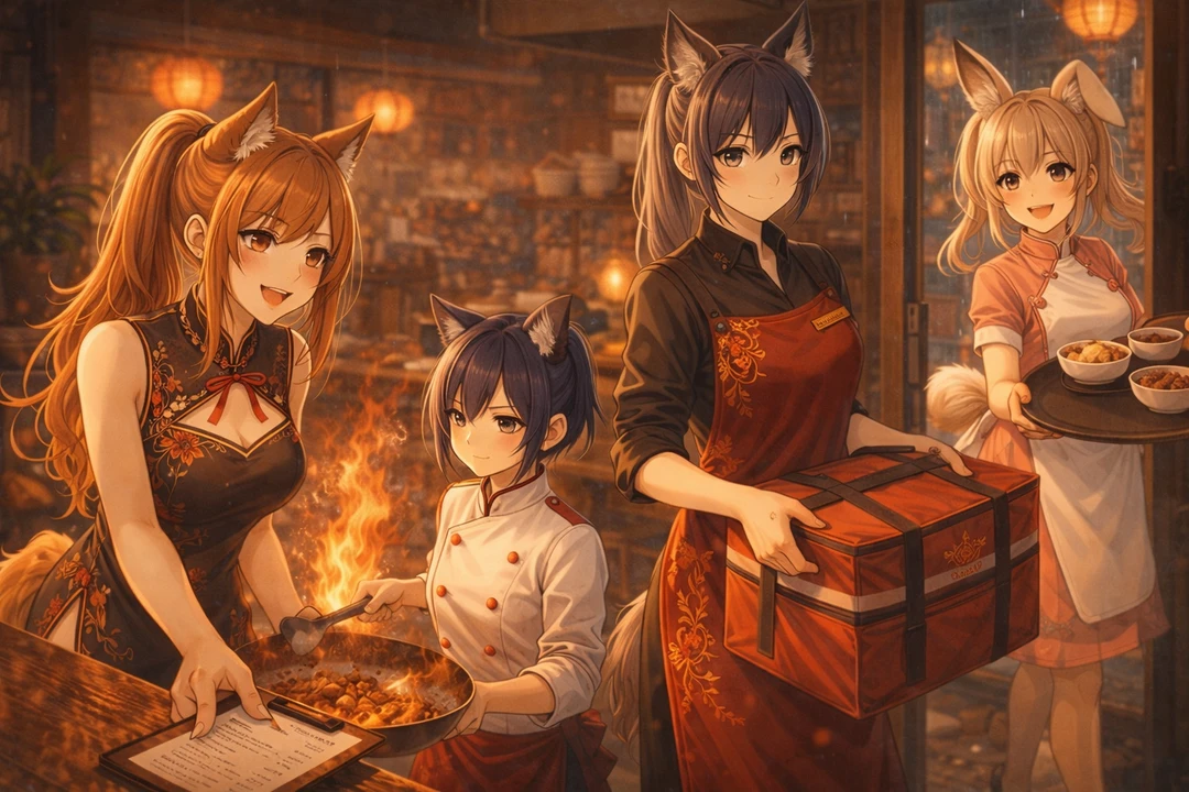 대학가 중심 골목에 위치한 중식당 홍월각 겉보기엔 평범한 가게지만, 내부에서는 수인 직원 네 명이 각자의 자리에서 움직이며 가게를 운영하고 있다.